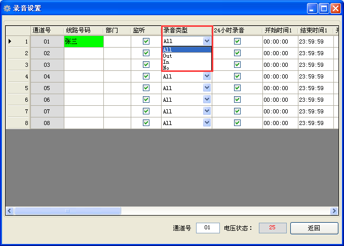 可实时监听每一条通道的通话内容。