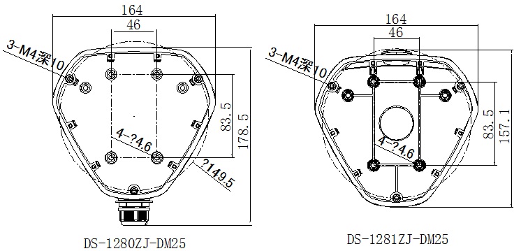 *“-S”表示具有1对音频输入(Line in/Mic in)/输出接口(3.5mm接头)、1对报警输入/输出接口和1个RS-485接口